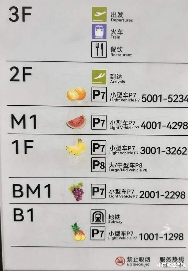 在虹桥机场的P7停车库,菠萝、葡萄等一跃成为“楼层代言人”。站在到达厅细心观察,可能会发现旅客手持电话高喊“去橙子还是葡萄找你”的场面。